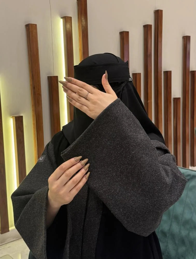 Abaya fabric: Full suiting wool (Jukh) with linen lining on the sleeves, giving a luxurious and elegant touch to the design.